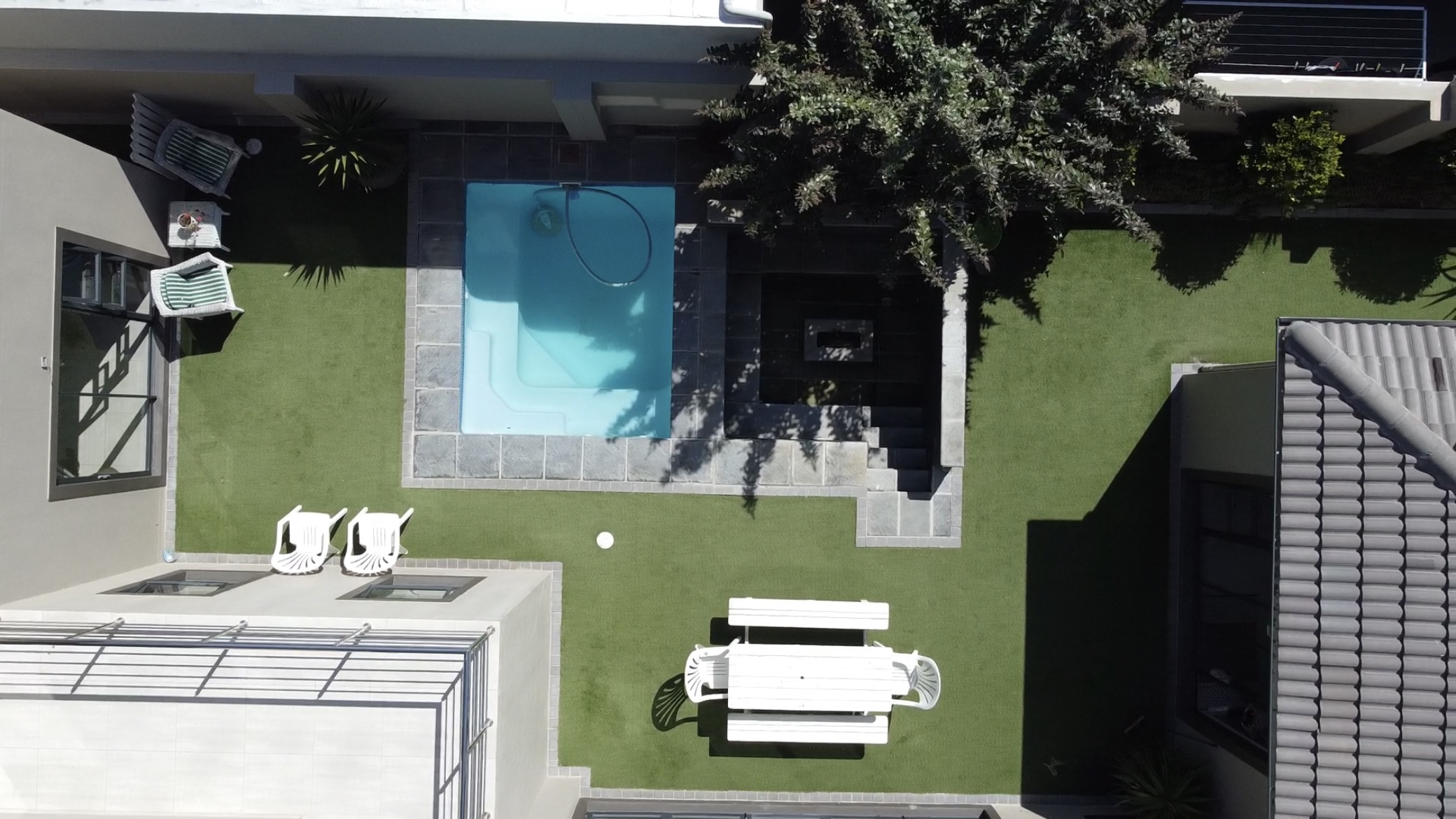 – Entertainment area with folding doors flowing onto enclosed landscaped garden with Pool